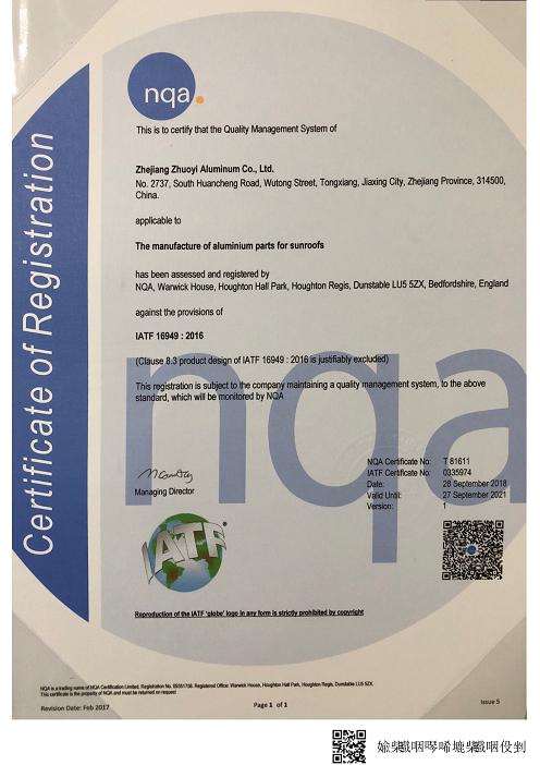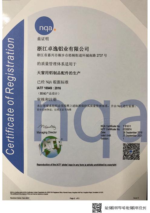 企業(yè)榮譽(yù) 網(wǎng)站首頁 > 關(guān)于我們 > 企業(yè)榮譽(yù) 企業(yè)榮譽(yù)CORPORATE HONOR榮譽(yù)見證著足跡,榮譽(yù)見證著輝煌。卓逸人始終把所獲得的每一項(xiàng)殊榮當(dāng)成邁向更高目標(biāo)的起點(diǎn),“雄關(guān)漫道真如鐵,而今邁步從頭越”,卓逸人正朝著新的目標(biāo)與高度邁進(jìn)。 守合同重信譽(yù)企業(yè) 守合同重信譽(yù)企業(yè) 常務(wù)理事單位 優(yōu)秀成長型企業(yè) IATF 16949質(zhì)量管理體系證書——中文 IATF 16949質(zhì)量管理體系證書——英文 會(huì)長單位 卓逸鋁業(yè)-14001 123